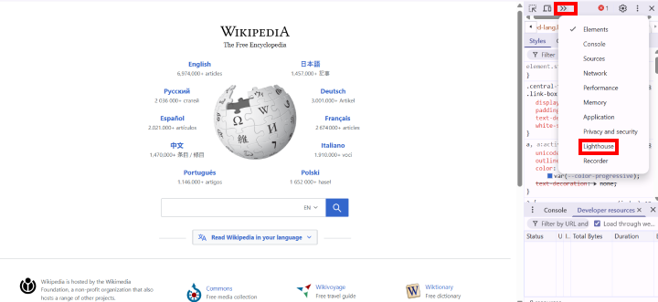 Lighthouse measures how fast a page loads and how responsive it is to user interaction. For Wikipedia, the overall performance score is 85, which is very good but has room for improvement.